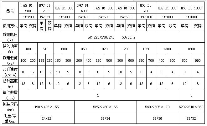 PA300微型電動葫蘆參數圖: